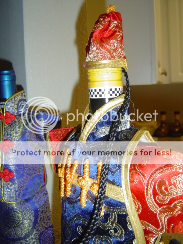 ...literally. How absolutely adorable are these kimono wine holders? I received these as a gift and they instantly made me smile. The little man has a hair braid and his lady friend looks slender in her slim fitting 2 piece kimono.